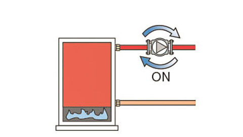 When a boiler is turned off some heat remains in the mass of the boiler. If the flow through the boiler is stopped at the same time the boiler is shut off, the residual heat is lost. Therefore, after operation of the boiler the residual heat in the boiler should be purged to the system in order to decrease standby losses. This is accomplished by turning the boiler off but keeping the system pump on for a period of time. This function increases system efficiency by minimizing standby losses.