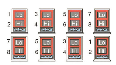 Many boilers or water heaters have two stage burners. The control must therefore stage the operation of the burner by first firing the lo fire and then the hi fire. If equal run time rotation is desired, the control must now rotate the two stages in sets of two. This ensures that the burner always fires in the proper sequence while still ensuring equal running times of all boilers.