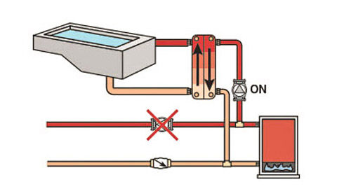 To protect the boiler against flue gas condensation and thermal shock, a mixing device should be used to control the load on the boiler. If the temperature of the boiler is below the condensation temperature or the return water temperature suddenly cools down, the mixing device can back off, allowing the boiler loop to come up to temperature. By protecting the boiler, this function provides longer boiler life.