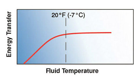 A glycol solution in snow melting systems increases viscosity at colder temperatures. This reduces the system flow rate and heat transfer. In order to compensate for these changes, the control automatically raises the maximum allowed temperature difference (ΔT) across the slab.