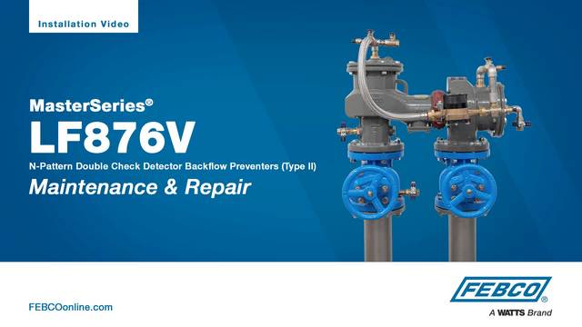 MasterSeries LF876V Lead Free* double check detector assembly backflow preventers are specifically designed to protect against possible backpressure and backsiphonage conditions for non-health hazard (i.e., pollutant) application in accordance with local governing water utility code. This assembly consists of a fused epoxy coated ductile iron body using ArmorTek® epoxy coating technology for advanced corrosion resistance. Maximum working pressure: 175 psi (12.1 bar).