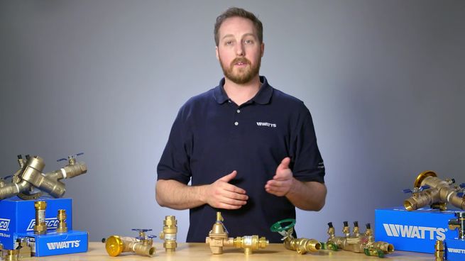Series 911 combination fill valve and backflow preventers are for use in commercial and residential hydronic heating systems to provide make-up water to the boiler and prevent backflow when supply pressure falls below system pressure. It consists of a brass Watts Model 9D backflow preventer and a bronze Watts Model 1156F feed water pressure regulator in one pre-assembled unit. Series 911 has a high capacity fill valve that provides quick system filling and purging. It is designed for use in the boiler feed lines of hydronic heating systems. Maximum Pressure: 100 psi (6.9 bar).