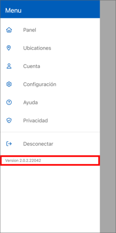 - La versión del software se muestra debajo de la opción “Sign Out” (Cerrar sesión), en el menú emergente